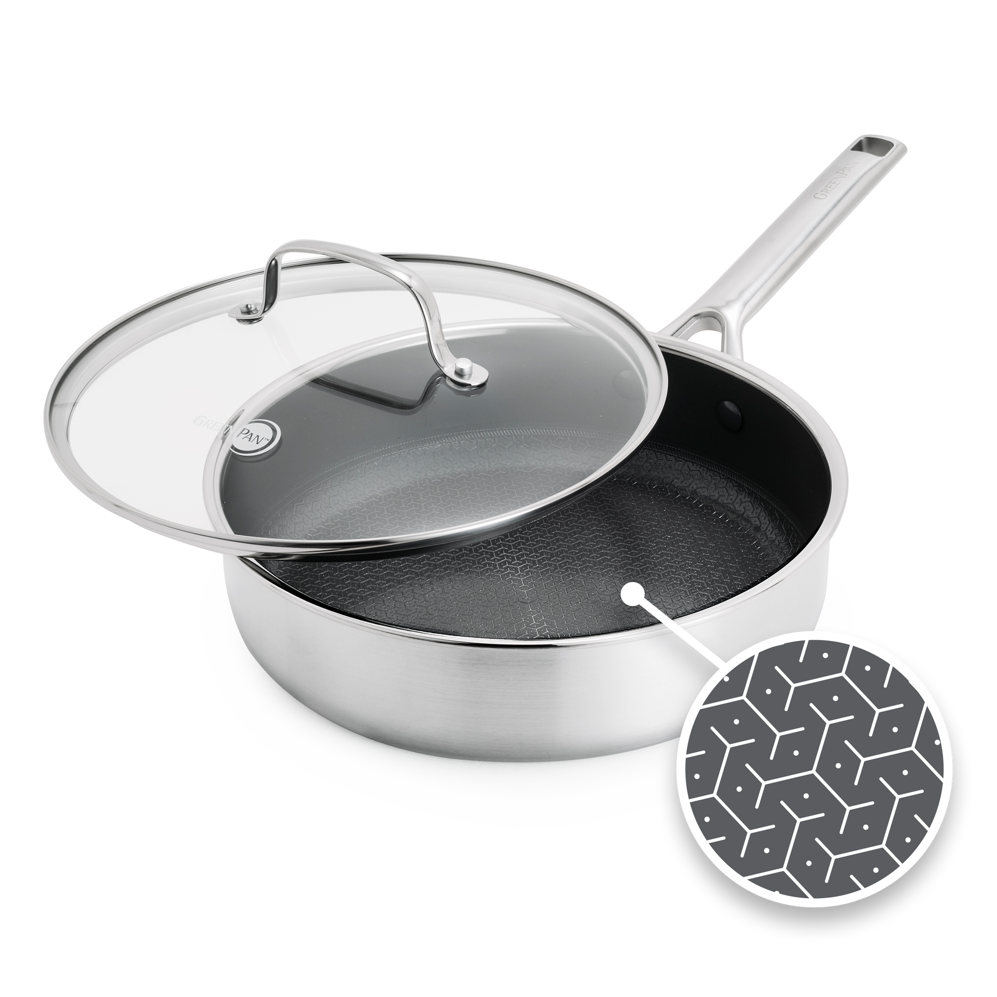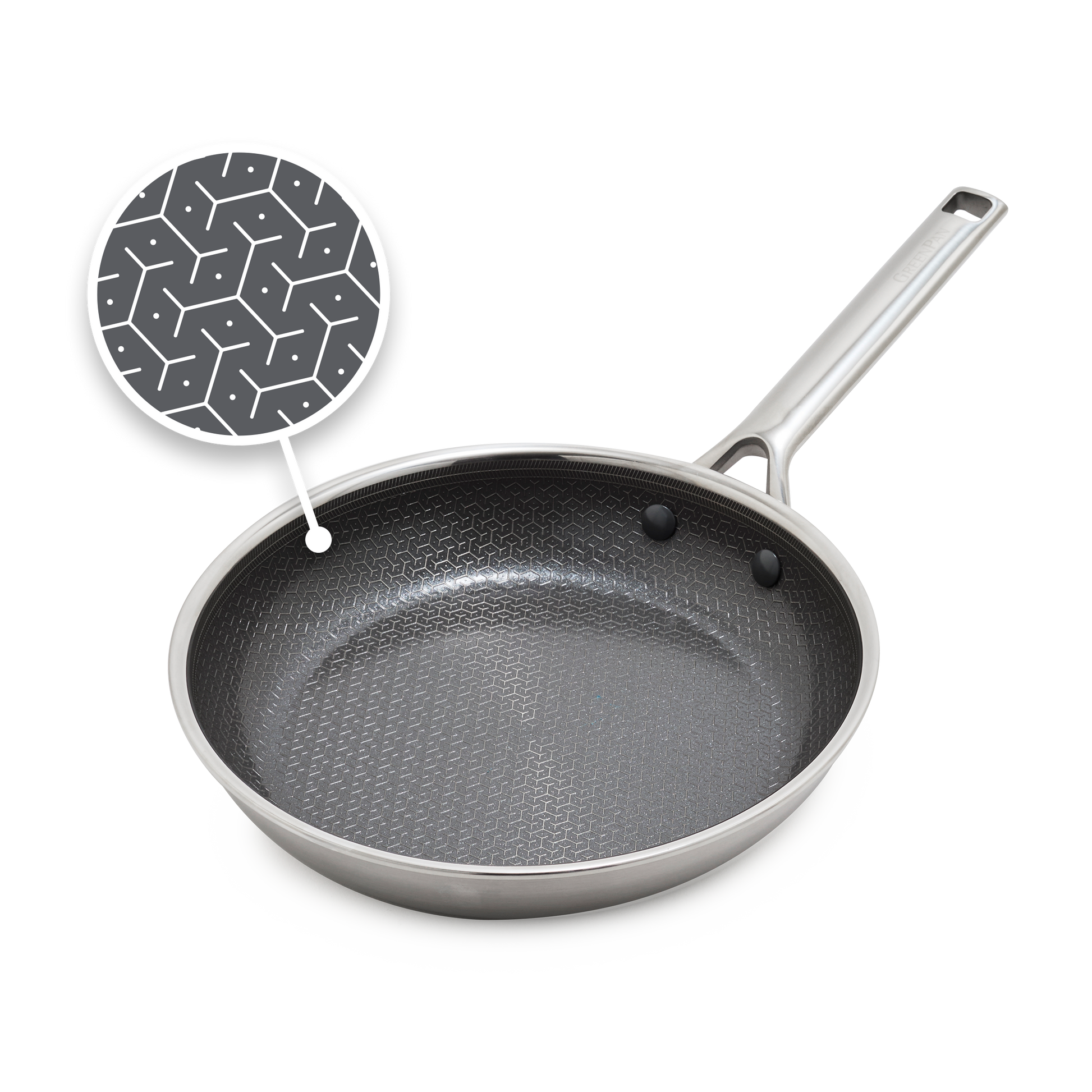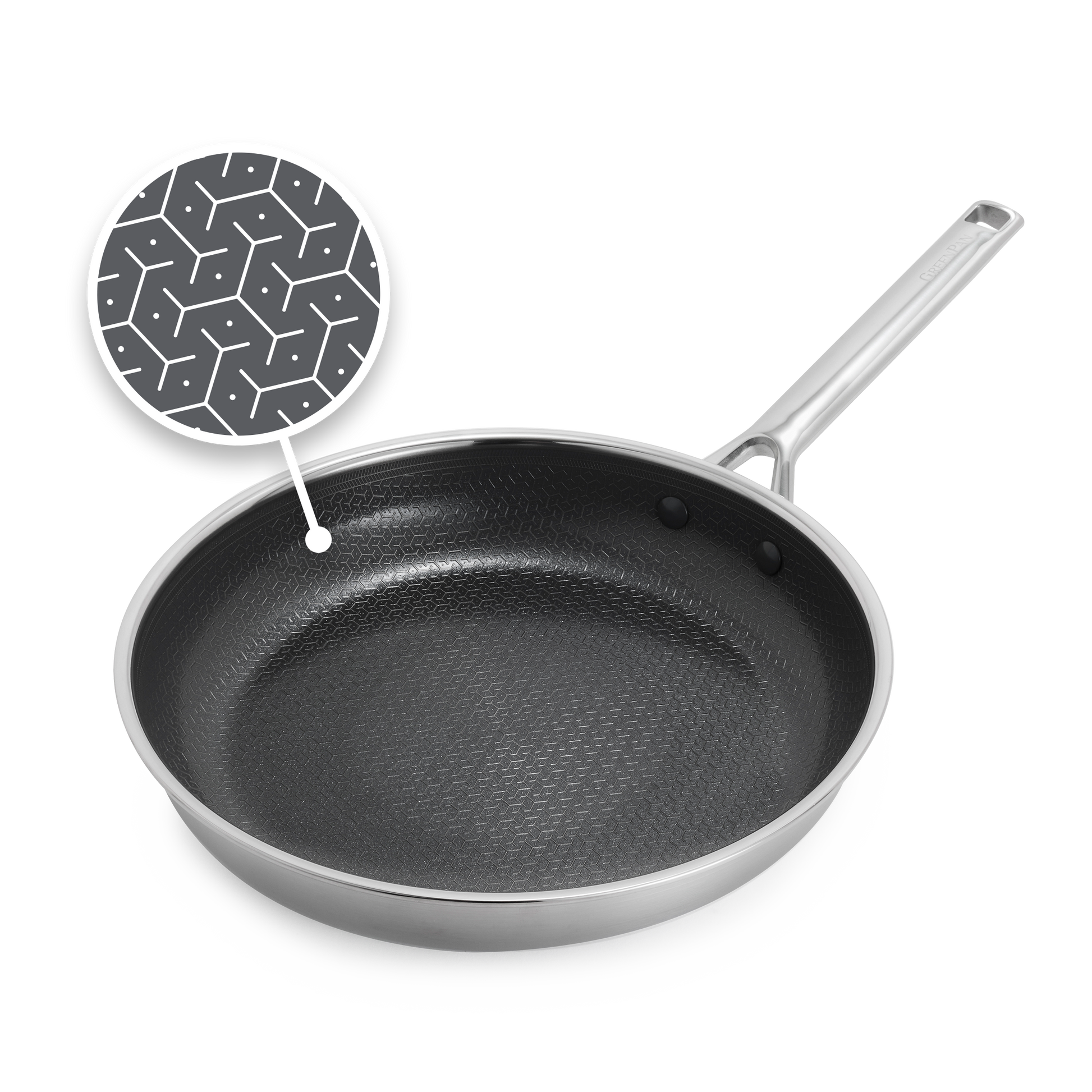 GreenPan APEX is een heruitvinding van hybride kookgerei. We combineren een krachtig geëtst patroon in roestvrij staal met onze kenmerkende PFAS-vrije antiaanbaklaag en voegen een boostlaag toe voor maximale prestaties. Ongelooflijke schroeiresultaten en moeiteloze loslating. Gemaakt van drielaags roestvrij staal is APEX vijf keer beter bestand tegen metalen keukengerei, ontworpen voor alle kookplaten en ovenbestendig tot 220 graden Celsius. Het is ook gemakkelijk schoon te maken. Ervaar de evolutie van hybride kookgerei met GreenPan.