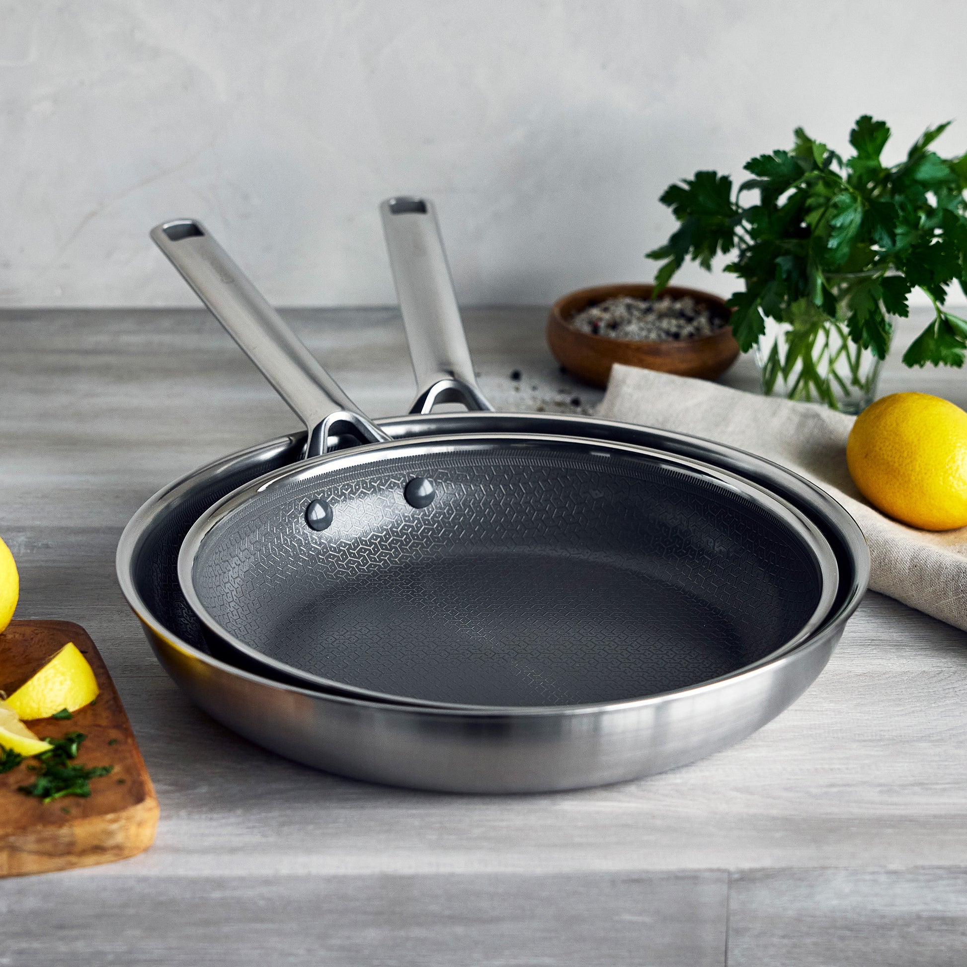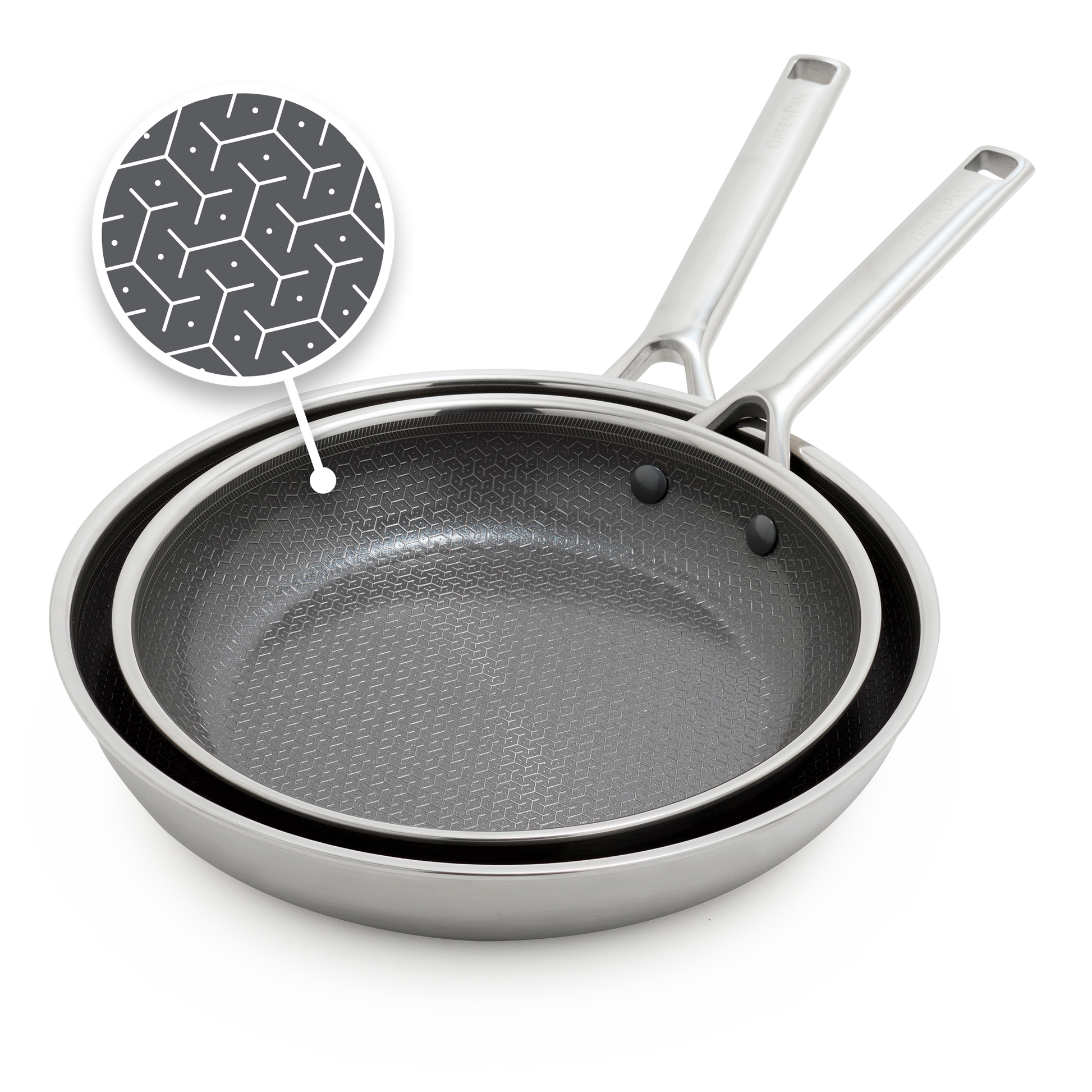 GreenPan APEX is een heruitvinding van hybride kookgerei. We combineren een krachtig geëtst patroon in roestvrij staal met onze kenmerkende PFAS-vrije antiaanbaklaag en voegen een boostlaag toe voor maximale prestaties. Ongelooflijke schroeiresultaten en moeiteloze loslating. Gemaakt van drielaags roestvrij staal is APEX vijf keer beter bestand tegen metalen keukengerei, ontworpen voor alle kookplaten en ovenbestendig tot 220 graden Celsius. Het is ook gemakkelijk schoon te maken. Ervaar de evolutie van hybride kookgerei met GreenPan.