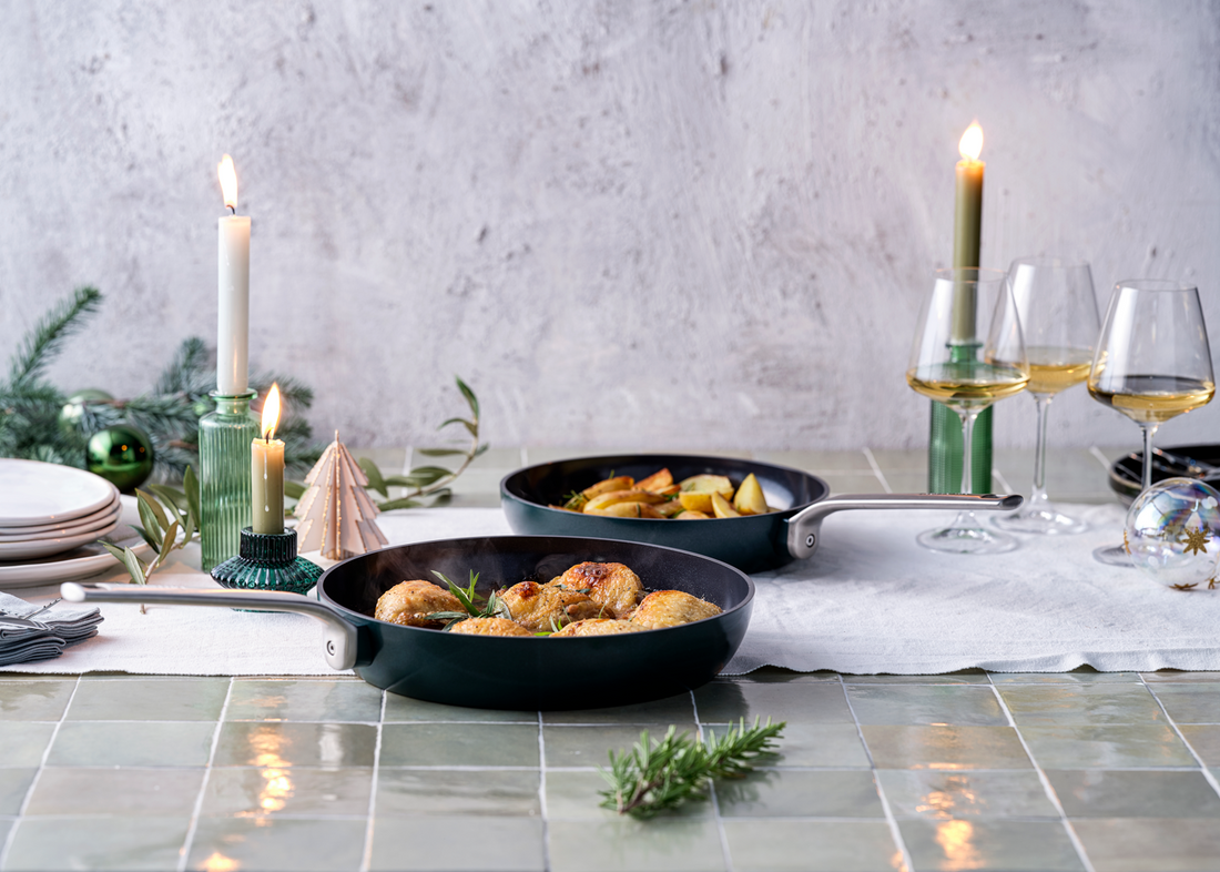 Deze collectie springt eruit door z’n gitzwart design, speciale matzwarte handgreep en kwalitatieve materialen voor jarenlang kookplezier. Ideaal voor chefs die houden van een vleugje rock-‘n-roll in de keuken. Het extra groot bakoppervlak geeft je alle ruimte om te experimenteren en de naadloze binnenkant is in een handomdraai weer schoon.