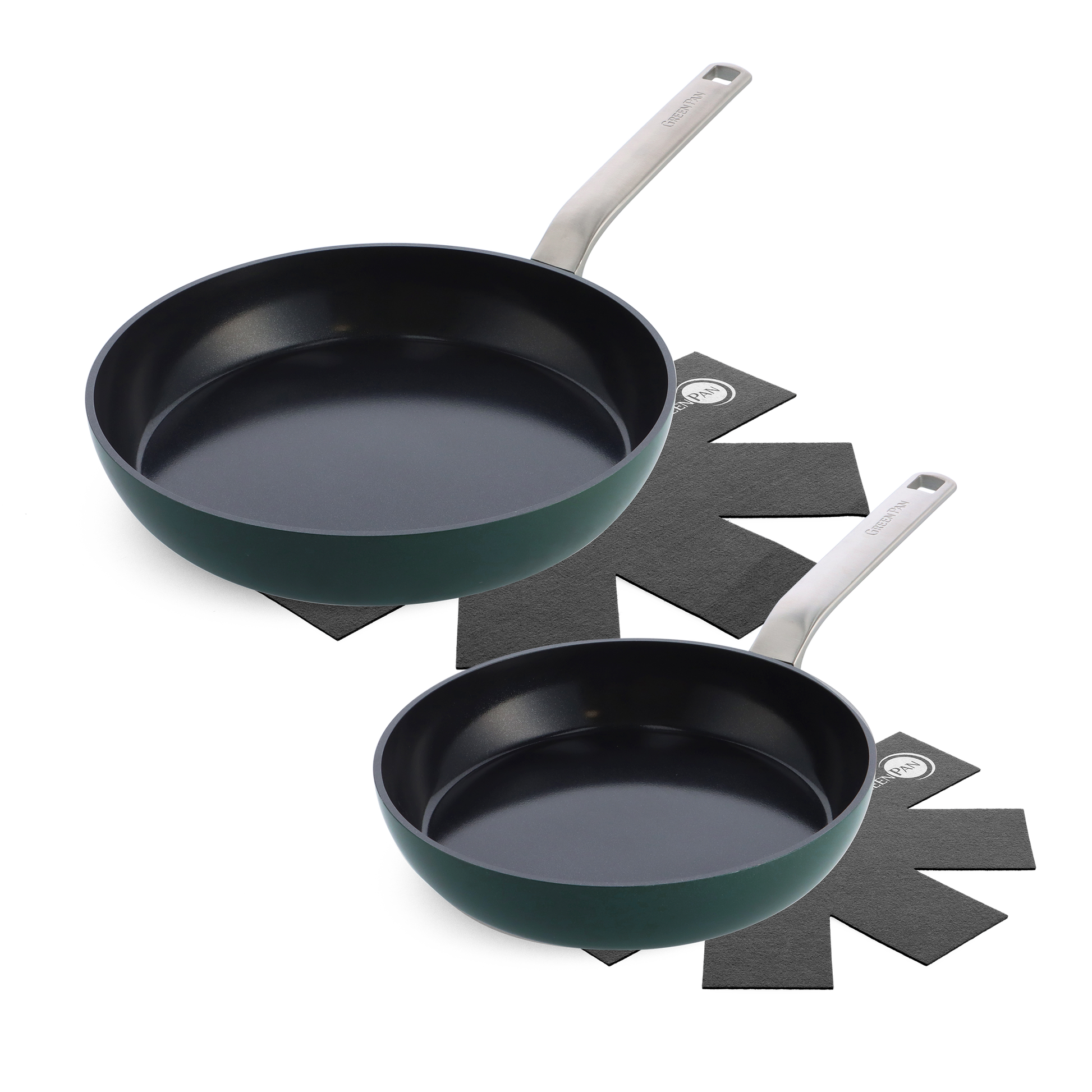 Deze collectie in trendy donkergroen, heeft een slim design met een hart voor de planeet. De items bevatten gerecycleerd aluminium en hebben een afneembaar roestvrijstalen handvat. Daardoor kunnen ze makkelijk gerecycleerd worden. Er is ook minder CO2-uitstoot bij het transporteren van deze producten dankzij een kleinere verpakking. Goed voor de planeet en bovendien ziet deze collectie er fantastisch uit! Bij levering is de handgreep nog niet bevestigd op de pan. Dat doe je eenvoudig zelf aan de hand van ons handig stappenplan dat je in de verpakking kan terugvinden.