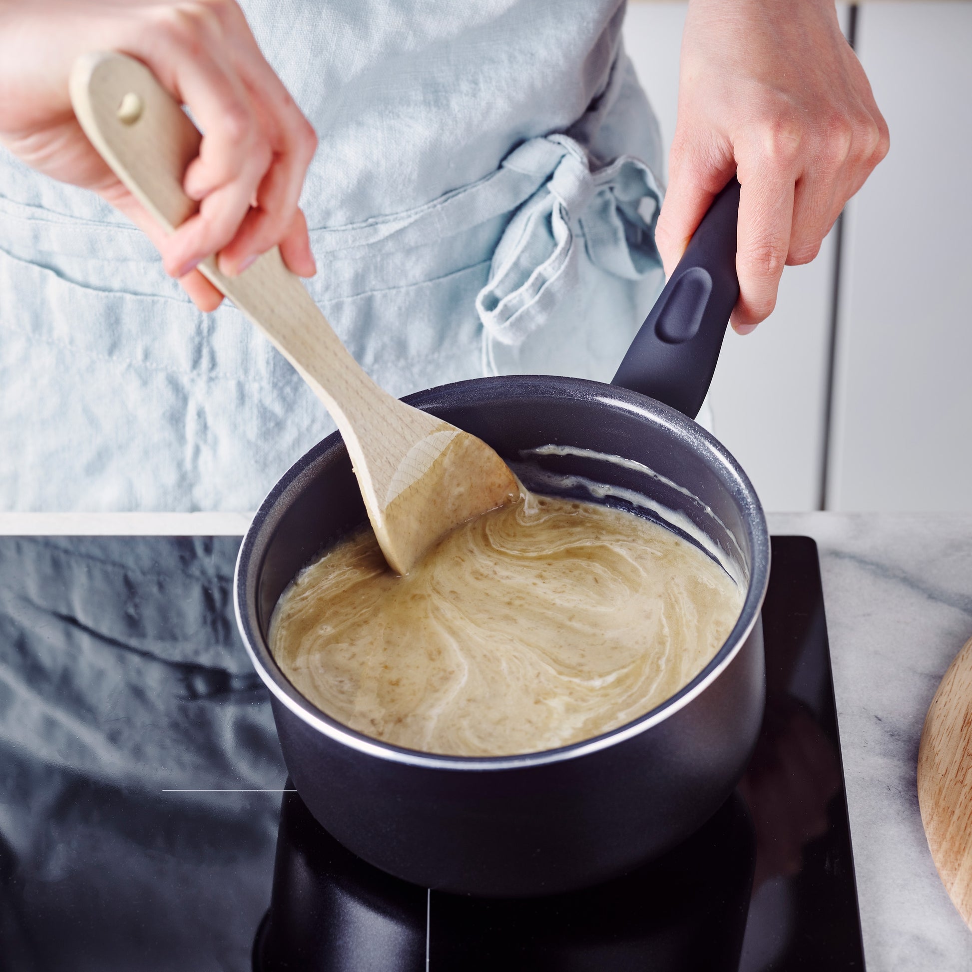 De keramische antiaanbaklaag is gemaakt zonder schadelijke PFAS-chemicaliën. Zo bak je gezonder! Bovendien heb je dankzij de antiaanbaklaag minder olie of boter nodig.