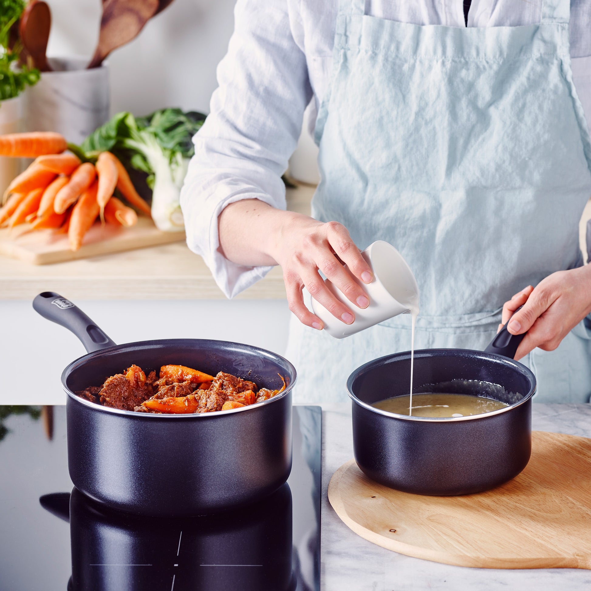 De Savory collectie heeft een ultrasterke PFAS-vrije keramische antiaanbaklaag die versterkt is met diamant. Ideaal voor intensief dagelijks gebruik.