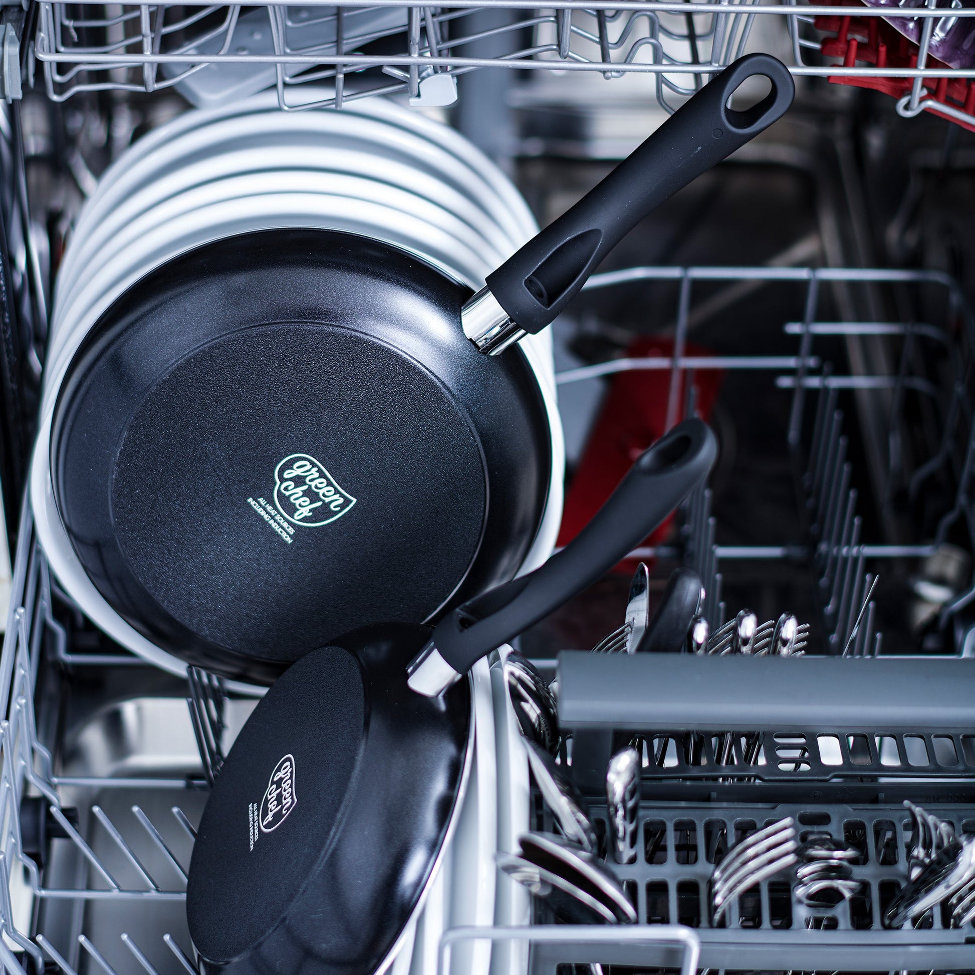 De naadloze binnenkant is makkelijk schoon te maken, maar de pan mag ook in de vaatwasser. Lekker makkelijk!