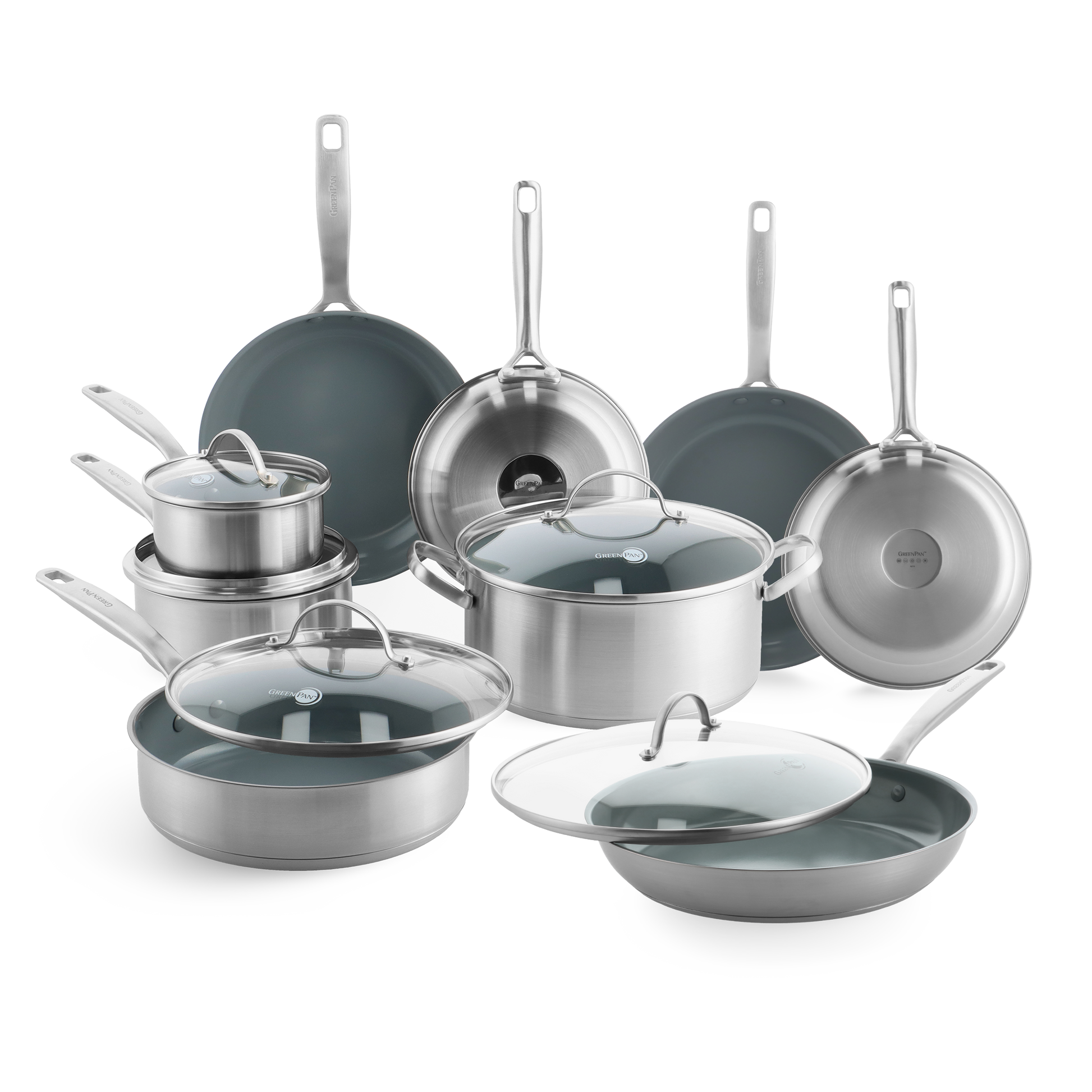 Hou het stijlvol in de keuken met de GreenPan Treviso collectie. Ze is gemaakt van roestvrij staal en heeft een ingekapselde bodem die gelijkmatig opwarmt voor perfecte resultaten. De pannen hebben een Thermolon™ keramische anti-kleeflaag, versterkt met diamant. Die zorgt niet alleen voor ongeziene bakprestaties, maar is ook makkelijk schoon te maken.